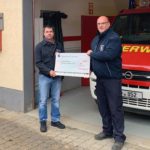 Foto von links: Reik Schildhauer (Wehrleiter FF Waldersee) bei der symbolischen Spendenübergabe an Dirk Schmitt (Löschgruppenführer FF Liers).